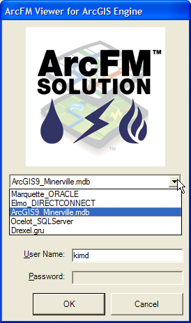 Figure 2, ArcFM Viewer for ArcGIS Engine login