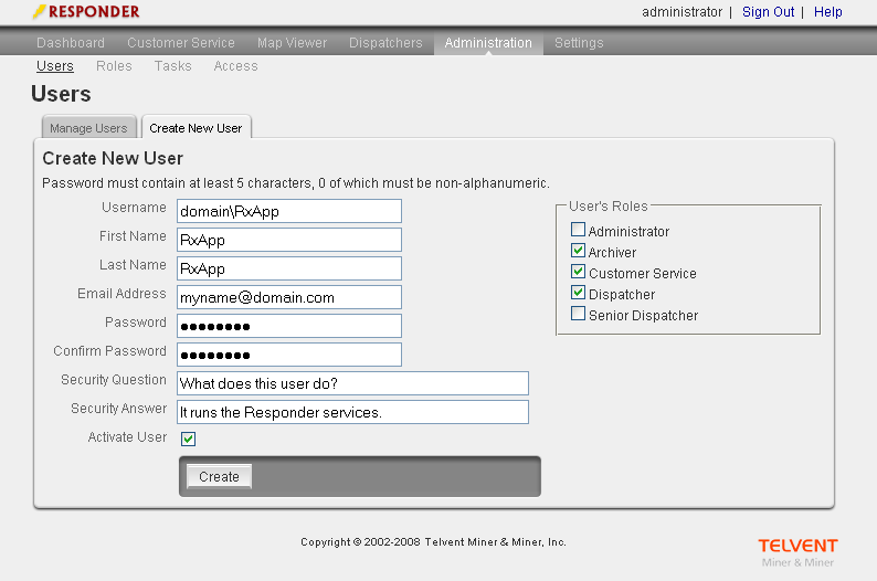 In the previous step, you assigned a user to run the Responder services. You will need to add this domain user to the RX_USERS table and assign the appropriate permissions.
