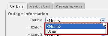 By default, when a customer with a Connect Status of NonPay (2) calls to report an outage, the only value available in the Trouble field is <None>. This prevents a delinquent customer from reporting an outage and having power restored before paying an outstanding account balance.