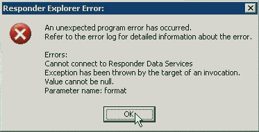 You may encounter the following error message when attempting to start Responder Explorer or the Responder web application.