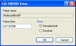 Note that this registry key does not work properly under Windows XP. If you're using Windows XP, there are alternate steps below to control network interface binding.