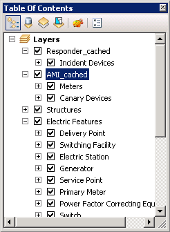 This optional step is performed in ArcMap. A group layer allows the user to use the Toggle Layer Cache tool and refresh only the group layer. This increases performance and causes the display to refresh faster. You may create AMI layers outside of the AMI_cached group. However, these layers will not be refreshed by the Toggle Layer Cache tool.
