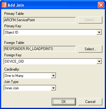 Join layers allow you to join a feature class in the map with a table that contains additional information and display this information in the map. For example, you can symbolize customer calls on the map by linking the Service Point feature class with the RX_CALLS table. The table contains information about calls that are received from customers at service points.