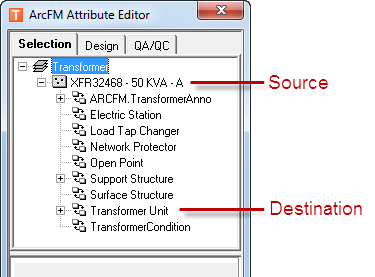 Most commonly, the destination object in a relationship is also the related object and the source participates in the geometric network. For example, the Transformer is the origin and participates in the network, and the TransformerUnit is the destination and the related object to the Transformer.