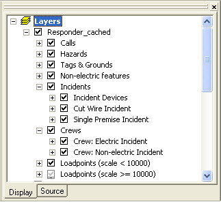 This step must be performed in ArcMap. A group layer allows the user to use the Toggle Layer Cache tool and refresh only the group layer. This increases performance and causes the display to refresh faster. You may create Responder layers outside of the Responder_cached group. However, these layers will not be refreshed by the Toggle Layer Cache tool.