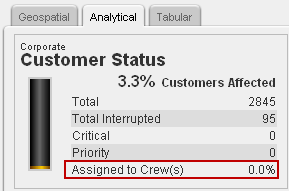 This filter impacts the Assigned to Crews field in the Customer Status group. The value shows the percentage of customer outages that have been assigned to crews. You can filter this value to display incidents assigned to a particular type of crew (e.g., contractors).