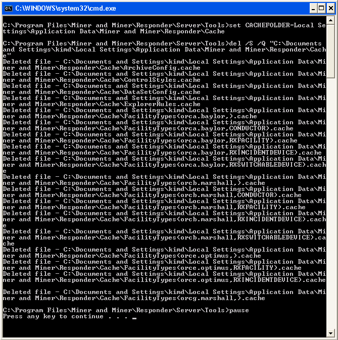 To optimize performance, Responder caches feature class name/ID pairs. Should feature class names and/or IDs change (e.g., due to Replication), you will need to delete the persistent cache on the Responder Server to ensure Responder knows about these changes. To do this, the Responder Server installation provides a batch script. Follow the steps below to delete the persistent cache.