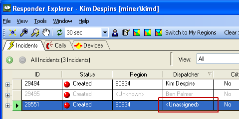 When an incident is created as a result of a customer call, the Dispatcher field is set to unassigned. If a Dispatcher edits that incident in Responder Explorer (right-click the incident and select Edit), that user is automatically entered in the Dispatcher field and assigned to the incident. You can change this behavior to leave the Dispatcher field value as "Unassigned" until a user changes it.