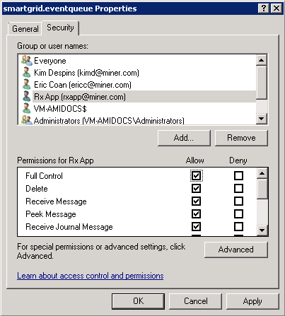 The Responder Services user must have full permissions on the smartgrid.eventqueue and logservicequeue message queues. Follow the steps below to assign these permissions. These message queues will not be created until you start the Smart Grid services.