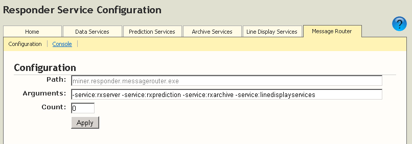 When run externally, the message router is a business service hosted by the Responder Windows Service. It provides support for scaling out Responder by adding additional computers to run the Responder business services (i.e., Data Services, Prediction Services, Line Display Services, and Archive Services). The message router works around the limitations of transactional queues.