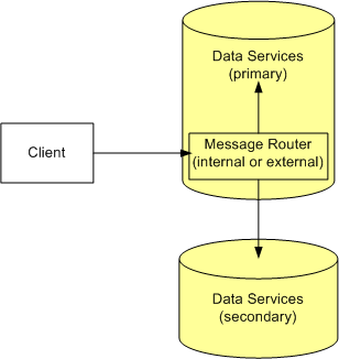 This page discusses two ways you can configure to use multiple instances of Data Services (or Prediction Services, Archive Services) on multiple machines. Implement the scenario that best suits your needs. In the first scenario, the external message router resides on a server of its own. In the second scenario, the secondary data services uses the message router on the primary server. This message router can be internal or external.