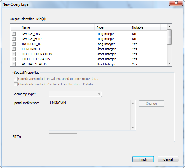 - Select unique identifiers for the view. For Responder views, the unique identifier is a combination of Device_FCID and Device_OID. For tables such as RX_Hazards, that already have a unique identifier, select ID.