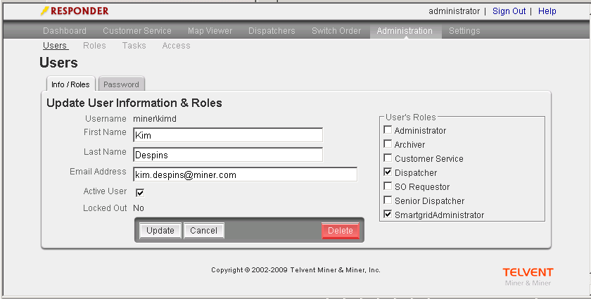 Responder Permissions: This user must be added using the Administrator tab in the Responder web browser. This user requires the Dispatcher role.