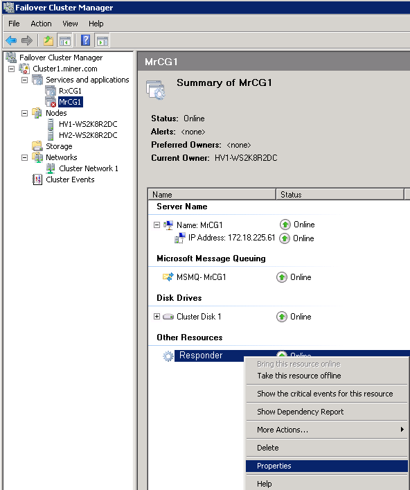 Next you will create the resource for the Failover Cluster Manager. These steps make the Responder Message Router work with a cluster.