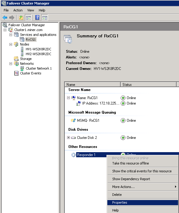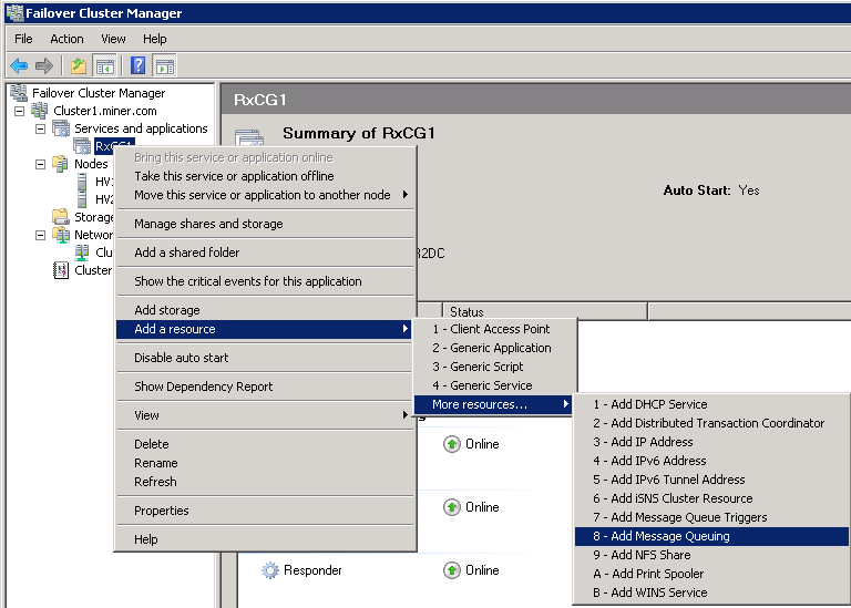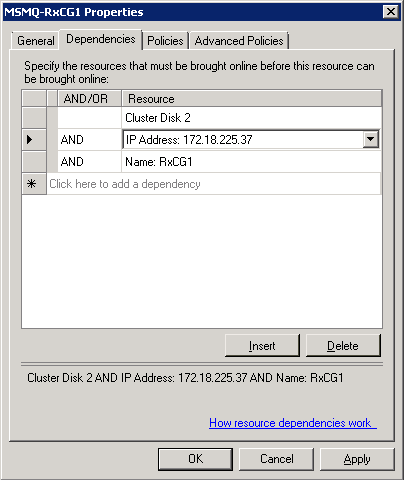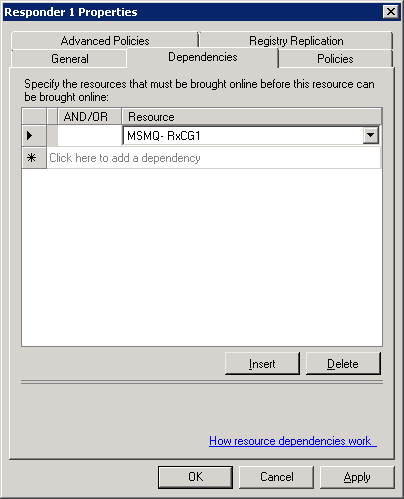 - The Responder 1 service requires the MSMQ cluster as a dependency. To add this: