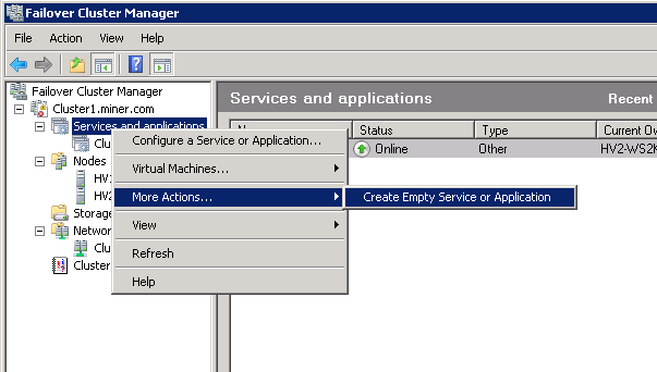 - Select More Actions, then Create Empty Service or Application. A new service is added. For the purposes of this documentation, and to keep instructions succinct, this will be referred to as a Cluster Group.