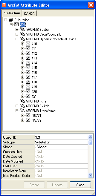 Each internal feature has a relationship with the substation. These relationships are visible in the Attribute Editor when you have the substation feature selected (figure 2). Note that the SubstationID is the foreign key in these relationships.