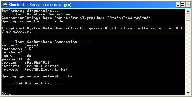 | Smart Grid Applications Overview > Responder Overview > Troubleshooting > Troubleshooting: "Exception: System.Data.OracleClient requires Oracle client software version 8.1.7 or greater" error when running diagnostics on Responder Data Services |
