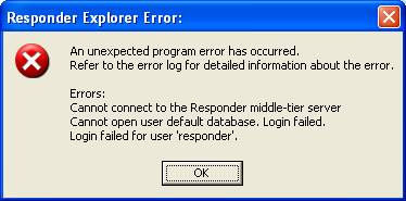 Problem: The following error occurs when the user attempts to open Responder Explorer.