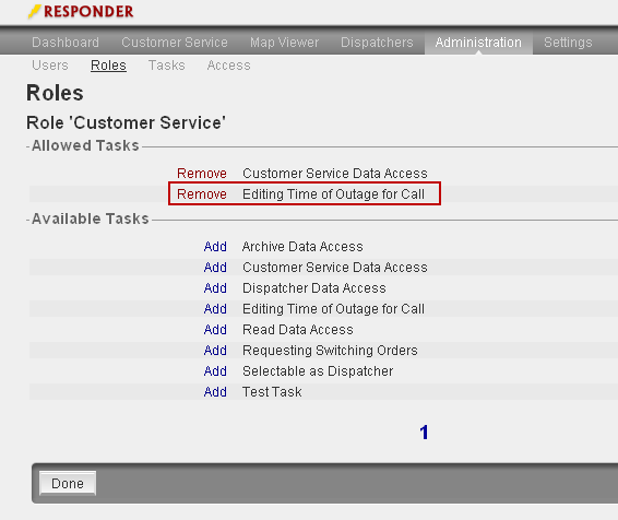 To add this Time of Outage field to the Customer Call form, follow the steps below. You will need to assign a new Task to a Role. Any users with this Role assigned will see the Time of Outage field.