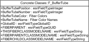 Attributes (required fields in red): BufferTubePosition: long integer - This field tracks the order in which the buffer tubes should be listed. This field is used by the Fiber Manager application and allows for non-conventional buffer tube colors and order. BufferTubeNumber: long integer - This field allows for a tube number that differs from the tube position. BufferTubeColor: text - This is the color of the buffer tube. This field is set by values in the Fiber Colors domain and can configured to be any color. The values in this domain can be expanded to include unconventional colors and stripes of any color. BufferTubeName: text - This is a short (two character) name to denote the color of the buffer tube. This name is used in various reports. The Fiber Color Names domain is assigned to this field. GlobalID: GlobalID - This field contains a unique number (GUID) that is generated and maintained by ArcGIS. This value is used for all relationships in the ArcFM data model and is required for Fiber Manager to function properly. FiberParent: GUID - This field contains the GlobalID of the parent object to the current object. ThisFiberClassModelName: text - This field stores the class model name assigned to the feature class on which the field resides. It is used in conjunction with the FiberParentClassModelName field to determine the GlobalID that will be placed in the FiberParent field. FiberParentClassModelName: text - This field stores the class model name assigned to the feature class that is the parent of the class on which the field resides. It is used in conjunction with the ThisFiberClassModelName field to determine the GlobalID that will be placed in the FiberParent field. FiberChildClassModelName: text - This field stores the class model name of a child object to the object on which the field resides. |