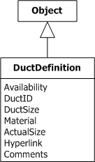 The user creates the DuctDefinition object class with fields that describe selected characteristics of a duct, such as size or material.