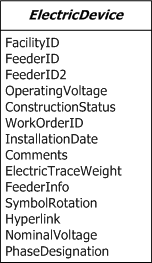 ElectricDevice is an abstract class represented as a simple junction feature because devices connect to the logical network from a single insertion point. In general, electric devices help ensure consistent service within the distribution network. Electric devices either provide protection, such as fuses or circuit breakers, or regulate electric current such as transformers and voltage regulators.