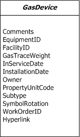 GasDevice is an abstract class. Gas devices control the flow of gas through a network of pipes, measuring and controlling the pressure at which gas is delivered. Features, including GasValve, PressureMonitoringDevice, GasLamp, ReliefValve, GasStation, and RuralTap inherit common characteristics from the GasDevice abstract class.