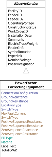 The PowerFactorCorrectingEquipment class (all subtypes) inherits attributes from the ElectricDevice abstract class. All model names assigned to the ElectricDevice class should be assigned to the PowerFactorCorrectingEquipment class as well.