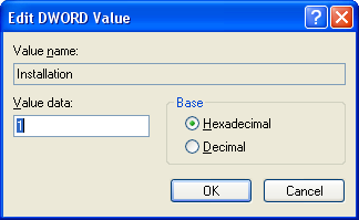 In the window to the right, double-click "Installation" to bring up the Edit DWORD Value window.