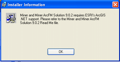 | Appendix > Troubleshooting Installation > Troubleshooting: While installing ArcFM, I get an error message saying ESRI's ArcGIS .NET support is required |