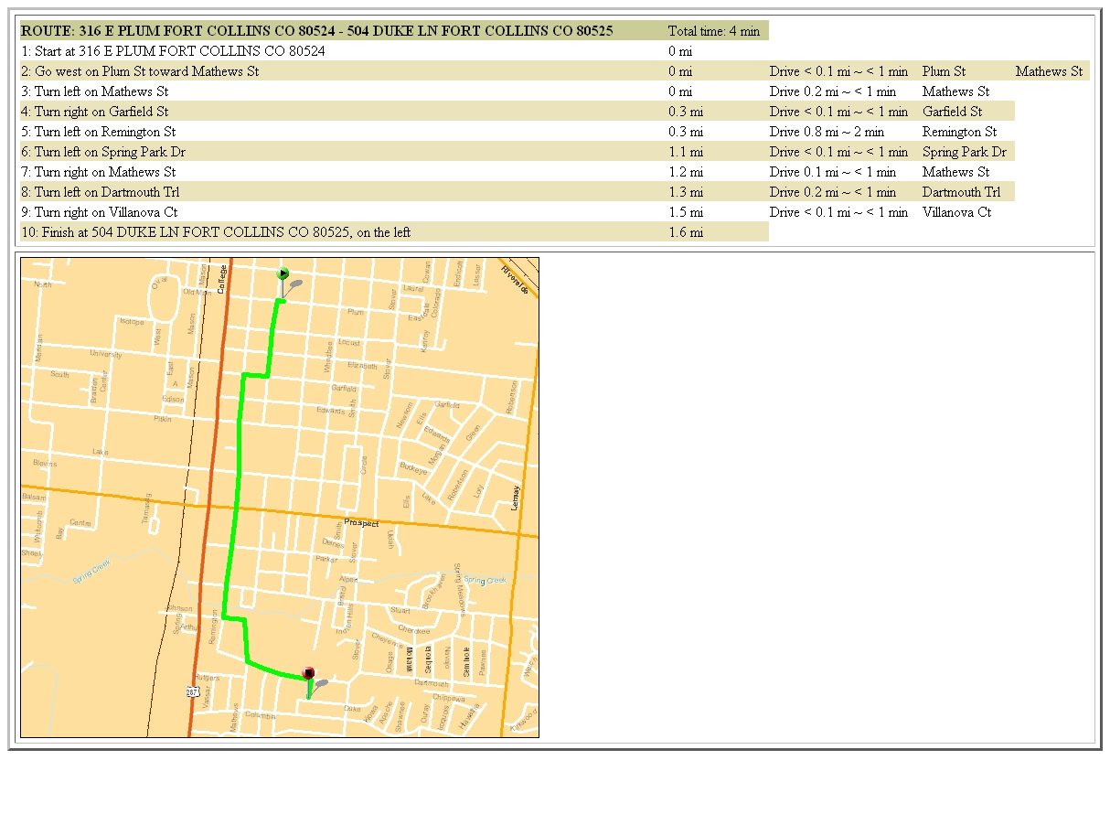 Figure 4, Driving directions and map displayed in separate web browser