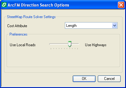 ![]() Figure 1, Direction Search Options for StreetMap data |