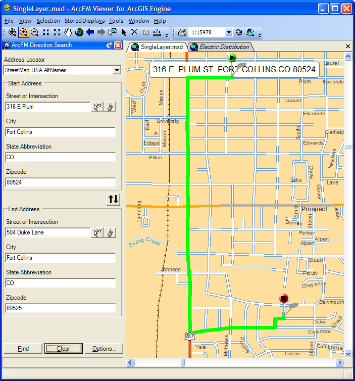 | ArcFM Engine Overview > ArcFM Viewer for ArcGIS Engine > Routing and Direction Tools > Direction Search |