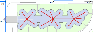 Select the Draw Buffer checkbox to turn on the buffer. If this checkbox is left unchecked, no buffer will be displayed with the trace results. Enter a value in the Buffer Distance field to determine the size of the buffer. This field is displayed in the same units as the map (feet, in the example).