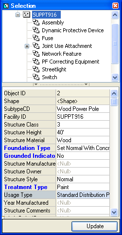 - Click the link at the top to display the attributes for the currently selected feature (SupportStructure:SUPPT916 in Figure 1).