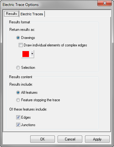 Results Content: Use this field to indicate the features that should be included in the trace. These settings are used by only the Electric Distribution and Downstream traces. All other traces ignore these settings.