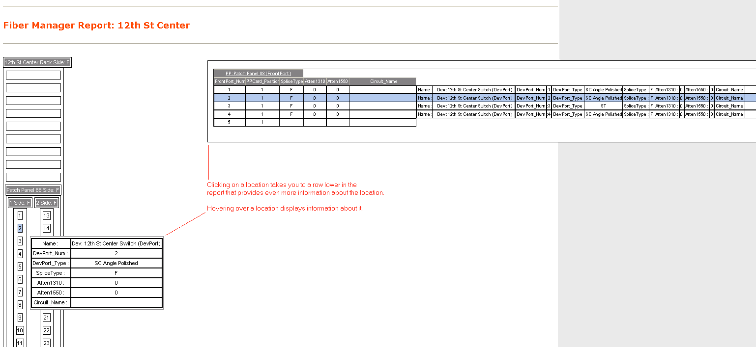 After clicking the Patch Panel Connection Report button and using the flag cursor to select the patch location (steps covered in the Patch Panel Report topic), follow the steps below.