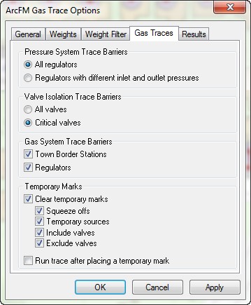 | ArcFM Engine Overview > ArcFM Viewer for ArcGIS Engine > Gas Tracing > Gas Trace Options |