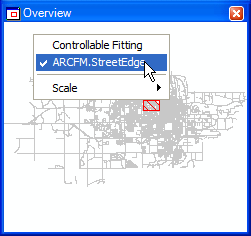 To choose the layer to be displayed, right-click in the Overview window and select a layer. Only a single layer may be displayed in the Overview. Select a value from the Scale flyout menu to determine the scale viewed in the Overview window.