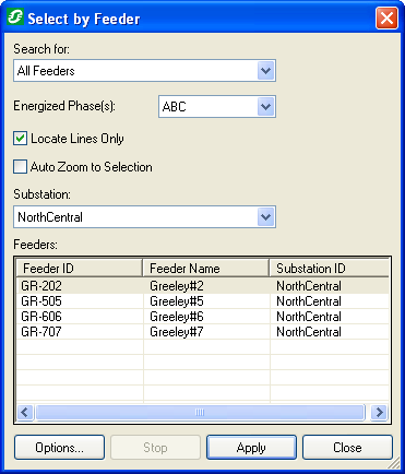 NOTE: The Energized Phase pulldown control will filter the results of a locate operation based on the energized phase information contained within the field with the FEEDERINFO model name assigned. It will not pay attention to any other phase designation fields. The results of a locate using the energized phase filter could result in a feature with a phase designation that is different from the energized phase.