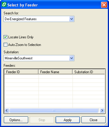 All Feeders locates all devices belonging to a given feeder or set of feeders. Select Multi-Feed Feeders to find all feeders that have more than once source of electric power. Feeders with Loops locates all feeders that create electrical loops.