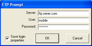 If FTP has been selected as the transfer method, you may be prompted to enter a password to establish the FTP connection. Select the "Save login properties" and the password will be remembered for future logins.