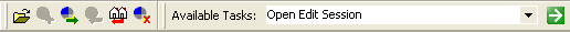 The Session Manager toolbars allow you to perform various tasks within Session Manager. Some tools are available only if Session Manager has been opened through ArcMap. In Session Manager, the Available Tasks tool resides on a separate toolbar.