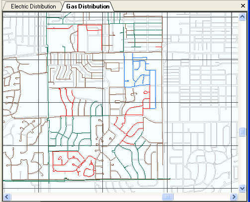 Two stored displays selected on two different map tabs (Gas Distribution and Electric Distribution)