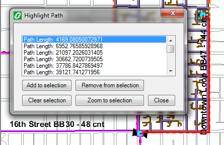 If this trace discovers paths that fork into two or more paths at the same junction and those paths merge at another junction, only one path will be returned. If the paths split at the start point (and merge at the same point later) all possible paths are returned. This issue may be resolved by Esri in a future release. |