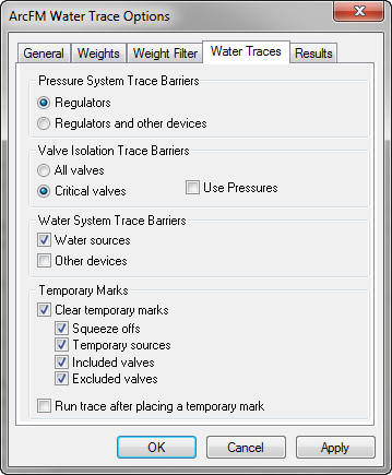 | ArcFM Engine Overview > ArcFM Viewer for ArcGIS Engine > Water Tracing > Water Trace Options |