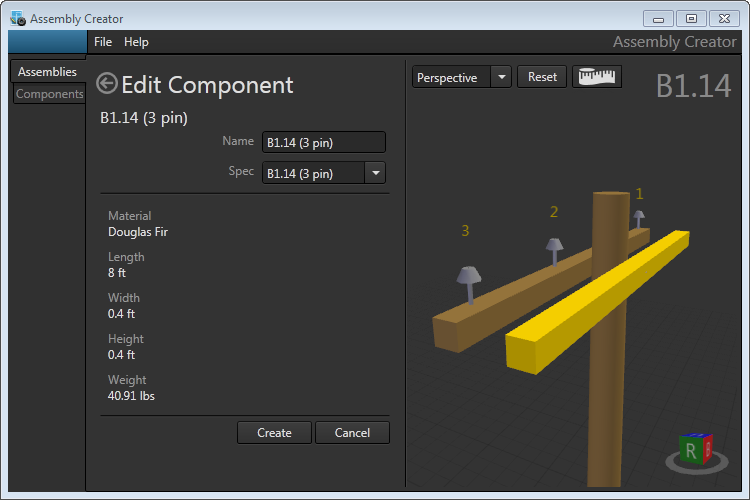 - Click Create. Assembly Creator adds the cross arm to the assembly and removes the highlighting.