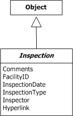 Structures and devices are periodically inspected to ensure proper functioning and quality. The abstract class Inspection provides a way to define this information for structures, devices, controls, and units. Define specific Inspection objects on an as-needed basis. As a new Inspection object is defined, you should also define any necessary relationships.