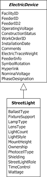 The StreetLight class inherits attributes from the ElectricDevice abstract class. All model names assigned to the ElectricDevice class should be assigned to the StreetLight class as well.